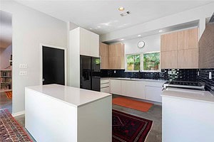 Even the most streamlined kitchens need warmth and personality. Incorporate art, texture, and nature-inspired elements to soften modern lines.
