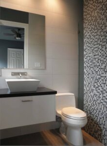 - Wall-mounted vanities for a clean, modern profile